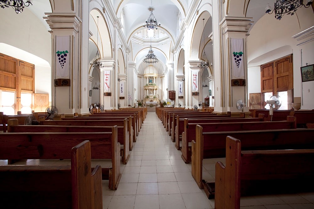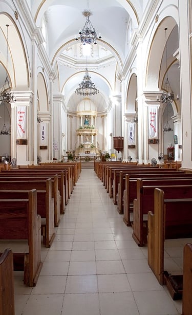 The altar of the current church was embedded with precious stones, but these were stolen or destroyed during Indian uprisings and the 1910-1921 Revolution. The bells and clock on the outside walls were sent from Europe.