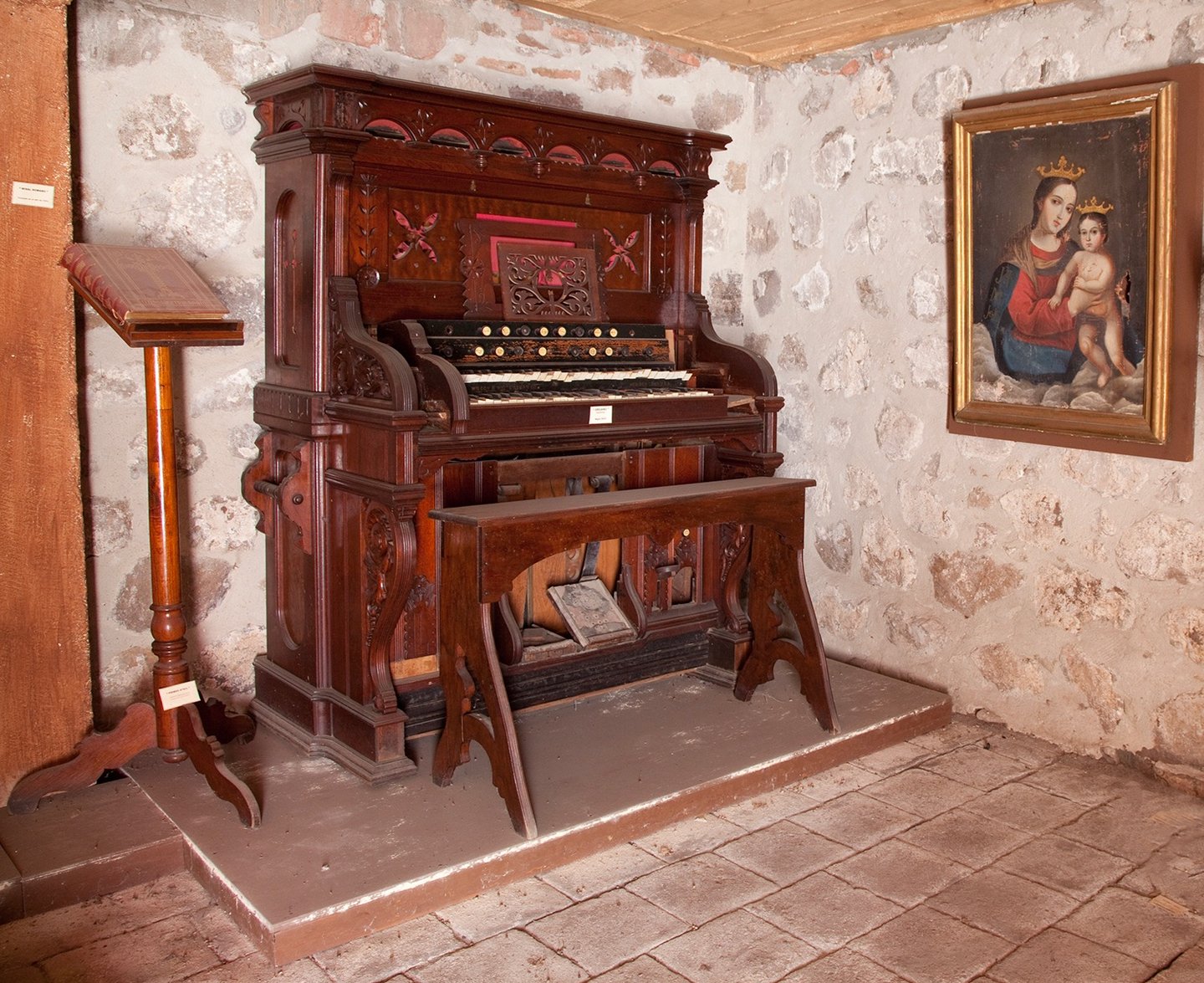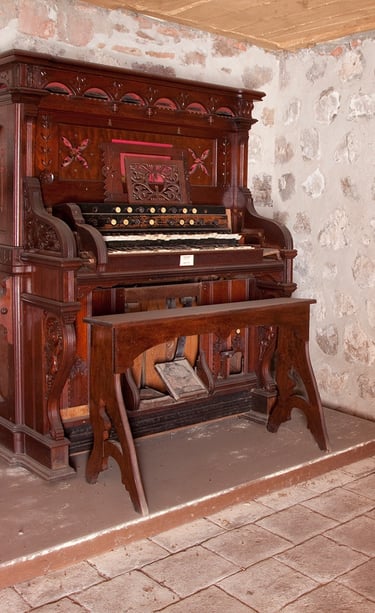 La Purísima church has numerous items no longer in use which provide an important historical background to the pueblo of Álamos. In addition to paintings, collection plates, rosaries, prayer books, bibles, and religious items in silver and gold, the church has in storage a pump organ from the 19th century manufactured by the Wilcox and White organ company in the United States. While the religious museum remains as a developmental idea, it is hoped that the museum can be opened soon.