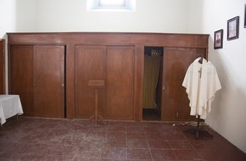 #7 is the room where the priests’ liturgical dress is stored in wooden closet. Some have said that in this room there is a secret area which was used to hide liturgical dress during the “guerra cristera” in Mexico during the 1920s.