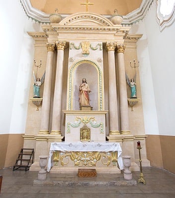 #5 - marks the altar, under which it is presumed is buried Antonio de los Reyes, the first bishop of Sonora, Sinaloa, and California, who died in March of 1787. In the first level we can see Christ and the crucifix, and on the second level is found a 19th Century Sculpture of the immaculate and pure image of the Holy Mother.