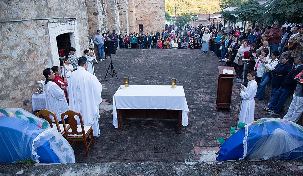 At 4 a.m. each year on November 12, a group of the “faithful” gathers at the la Iglesia de Nuestra Señora de la Purísima Concepción in Álamos to begin a procession to the mining community of la Aduana, about seven miles away. The group at the Álamos church is small, but it grows with each mile until several hundred march into la Aduana for the morning Mass at the church where the historic miracle occurred in the 17th Century.