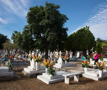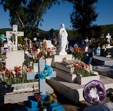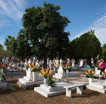 From the last few days of October through the first days of November, activity in Álamos and other cities in Southern Sonora is centered around the cemetery. Since crowds will be gathering on November 1 and 2, city workers improve roads leading to the cemetery, provide for parking, and clean the cemetery area to include putting fresh paint on the outside walls.