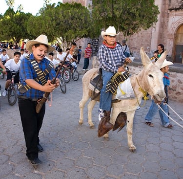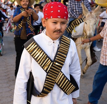 November 20 is the official day to commemorate the revolution, although in recent years the celebration has been on the third Monday in November. In Álamos there is a ceremony in City Hall, followed by a parade involving many of the school children of the city. The children are dressed in a variety of costumes in the mid-morning parade, with Poncho Villa "look a-likes" quite popular with young boys. As in all Álamos celebrations, food and drinking play a prominent role!
