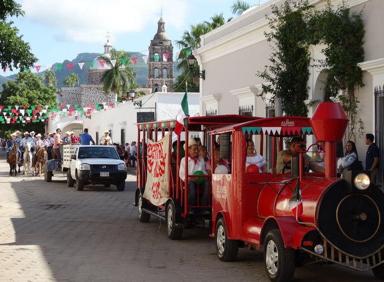 Independence Day in Álamos features a vibrant Grito de Independencia ceremony on the evening of September 15th in the Plaza de Armas complete with fireworks, music, and street food. The colonial town celebrates with parades, traditional music, and colorful decorations reflecting a deep sense of national pride.