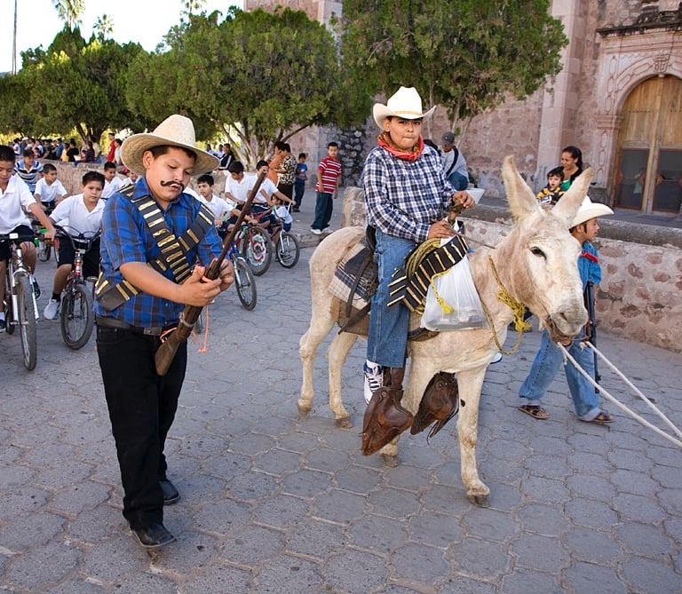 Cinco de Mayo activities in Álamos begin with a mid-morning ceremony at City Hall, followed by a parade which features the mayor, city officials, students from all schools in Álamos, and a large number of vaqueros on horseback. During the day there are music performances, and many community events.