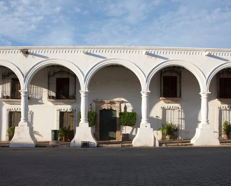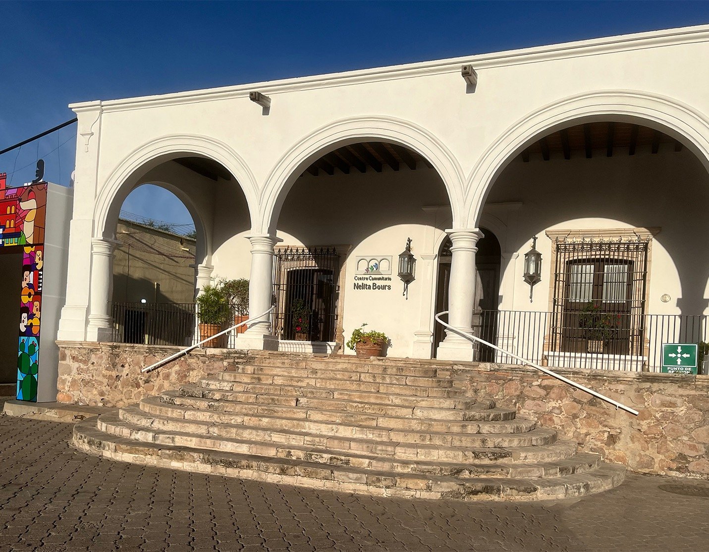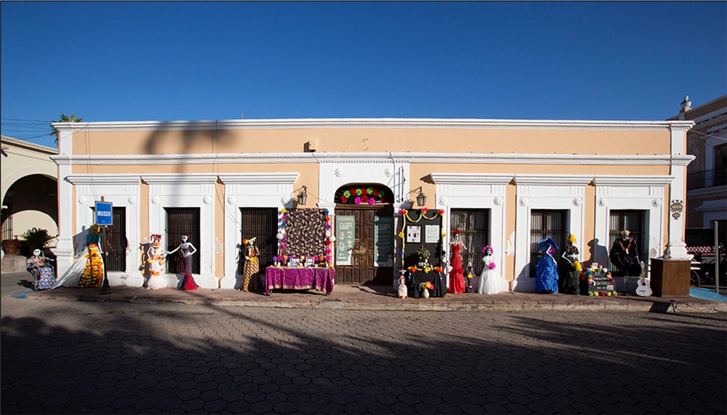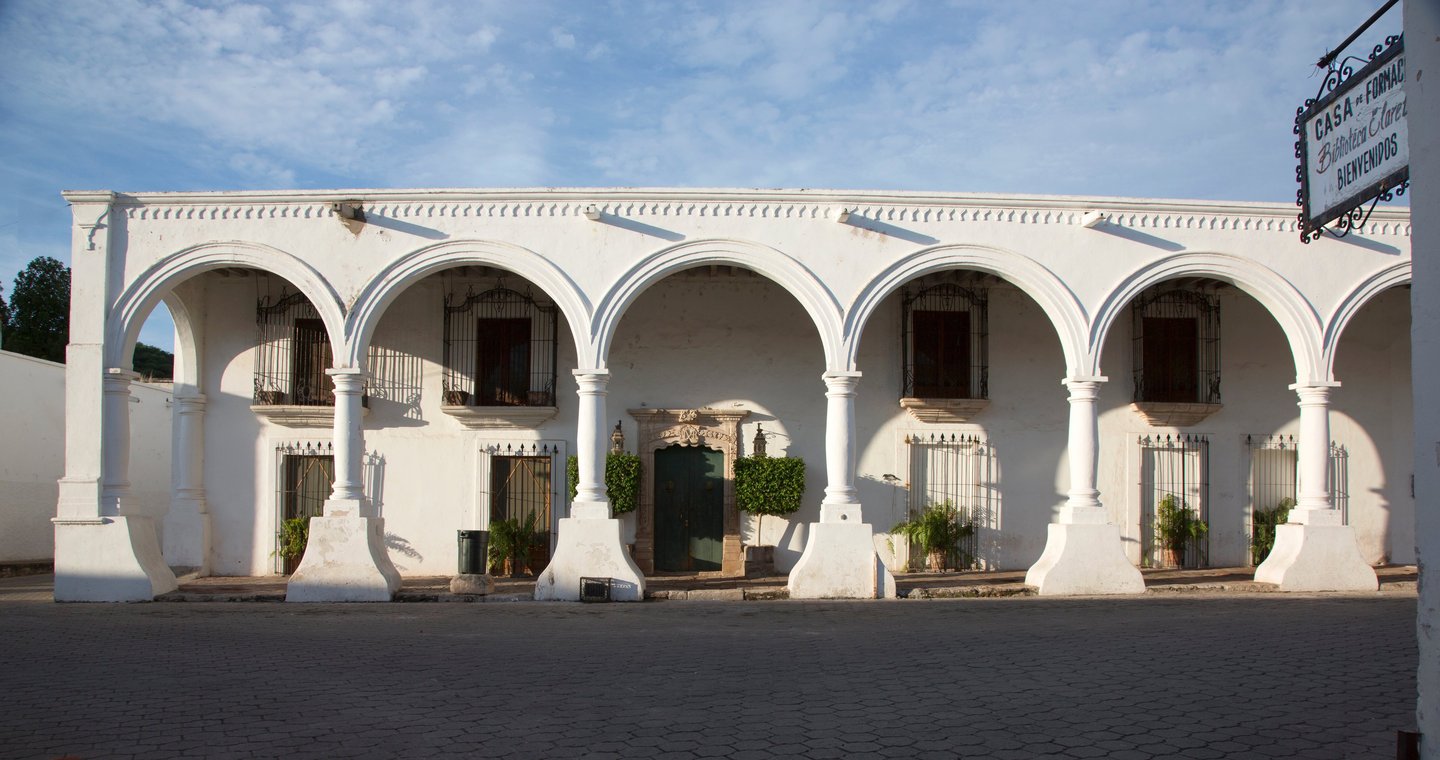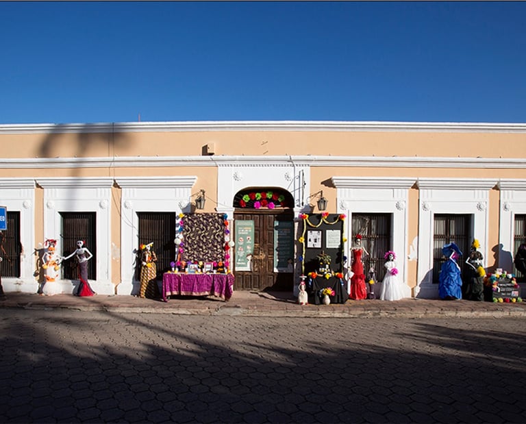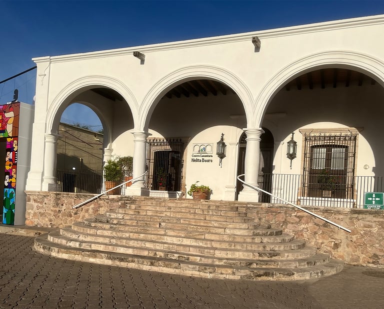 This house originally belonged to Bartolomé Salido, who operated a bank from this building while he lived at Madero #9 across the street. Salido gave this building to Ignacio Almada, his daughter’s husband, when they married in the 1830s. The main house was acquired by Thomas Robinson Bours Warne in the mid-19th century from for a dual purpose: to serve as a home and, in 1856, to open a banking business. Thomas Robinson Bours married Manuela Goyeneche and had more than a dozen children. After their mother’s death in 1889, the children ran the bank until the economic instability of the 20th century forced its closure. After falling uninhabited in the early 20th century, the house became the headquarters of the José Sarto School. A decade ago a remodeling process began, and the “Nelita Bours Community Center" serves the Álamos community with classrooms for art and education instruction, an auditorium, a museum, and Álamos history displays.