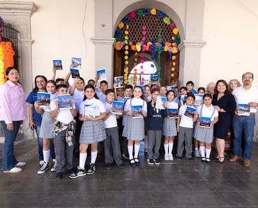 The building which now houses Bartolomé Escuela Primaria on Calle Guitérrez was the former home of Don Bartolomé M. Salido, and it was in this house where Bishop Antonio de los Reyes and his nephew were entertained upon their arrival in Álamos in 1783. With stone walls and a large courtyard, it was a typical 18th Century mansion. Upon the death of the last Salido heir, the building was willed to the municipal government for the establishment of a school in honor of the Salido family. The school was originally called the Barbara Ceballos and Bartolomé M. Salido school, since boys and girls were educated separately. The future of the building was uncertain a decade ago when major (expensive) repairs were needed, but overhelming community support has led to its restoration. The picture at left was taken in November, 2026, when The History Association published text books given to all elementary school fifth graders in Álamos.