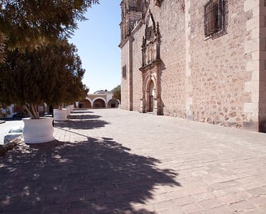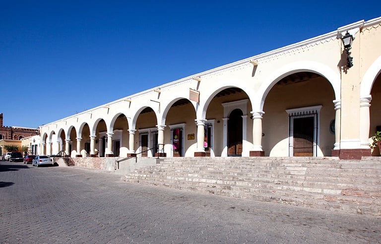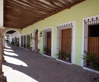 Don José María Almada, owner of the two richest mines in northern Mexico, built this house in the early years of the 19th Century. Don José had 19 children with his first wife, Isabela; after her death in the 1840s, he had 14 more children with his second wife. The property, with its crystal chandeliers (made in Belgium), oriental rugs, and tableware and dishes made of silver, was home to the influential Alamada family for a century before falling into ruin after the Mexican Revolution (1910-1921. A visiting American from Pennsylvania, Levant Alcorn, purchased the property in 1947, turned a portion of it into a hotel, and started the “Álamos Revival” which continutes to this day.