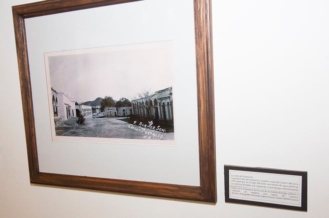 Comercio Street. Second Comercio Street, also known as Street of the Fountain because in the 19th Century there was a fountain of public water located there. It In the background to the left one can see what once had been a sidewalk for the house of the Barriga family with its wooden arches and stone bases. Archival photograph by Ernesto López Yescas, Centro INAH, Sonora