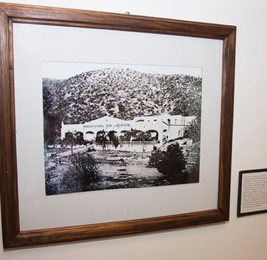 Hospital de Jesús, en el barrio del Perico. Fundado por la generosidad de don Jesús Antonio Almada en 1867, iniciando funciones con una sala y una recamara y un portal, limitado por un cerco de rama. Años después don Miguel Urrea donó para comprar el terreno y ampliar el inmueble, cosa que hizo el Ayuntamiento con los réditos del Monte de Piedad. Se compraron camas de fierro y mucho se presumireren in los periódicos, además de que se instalaron acequias y fuentes para surtirse de agua. Los doctores Miguel Gutiérrez y Alfonso Ortiz Retes fueron de los más famosos que laboraron en dicho lugar. En alguna administración publica la propiedad fue vendida a particulares, pendiéndose la ciudadania de poner este edificio que bien pudo ser centro de exposiciones, teatro, museo, oficinas etcétera. La foto es de 1905. Fuente: Juan Carlos Holguín Balderrama.