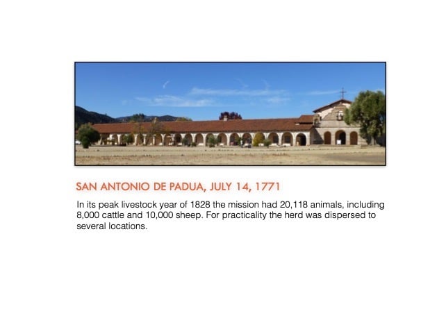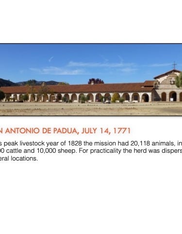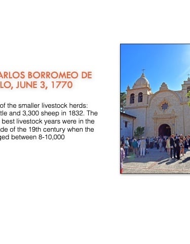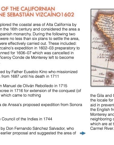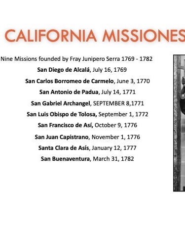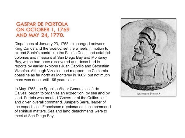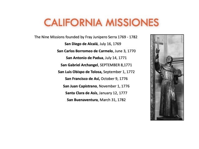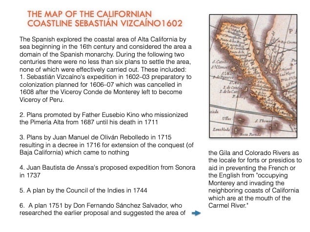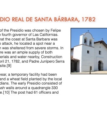 While the colonizing expeditions of Juan Bautista de Anza and Juan María de Rivera began the land exodus to alta California, Spain first explored this area by sea in the 16th Century and a number of missions were founded in the 18th Century (photo of Santa Barbara Mission at left)