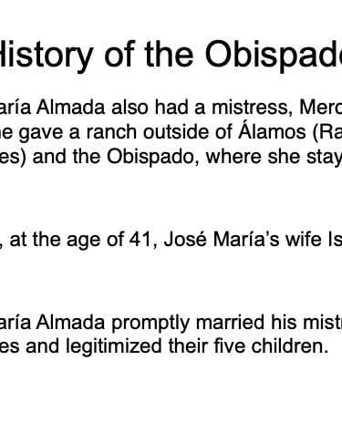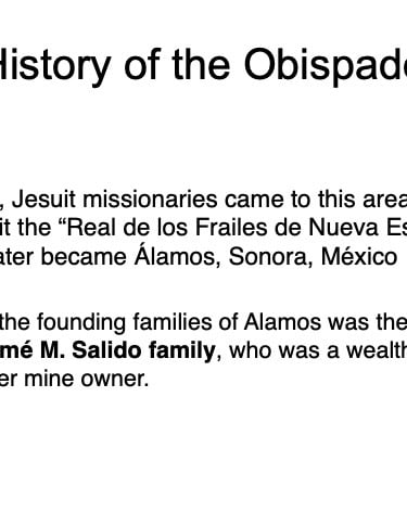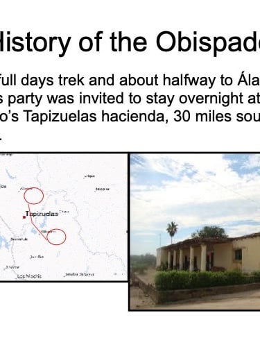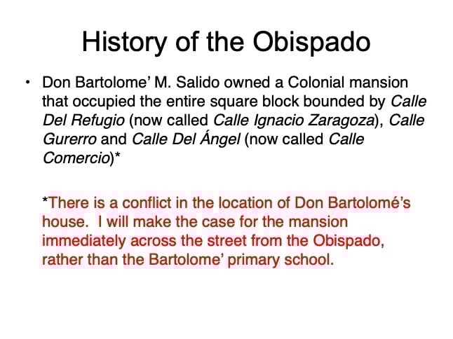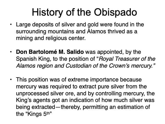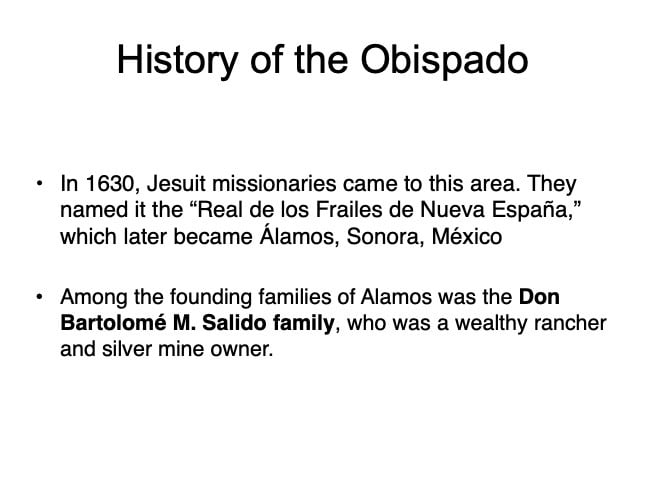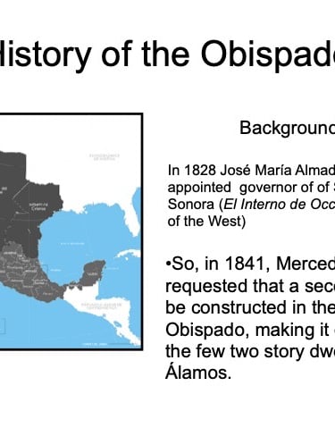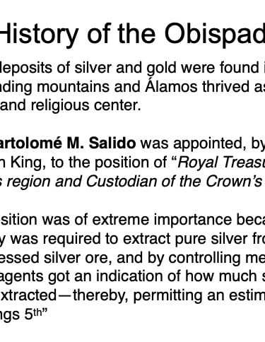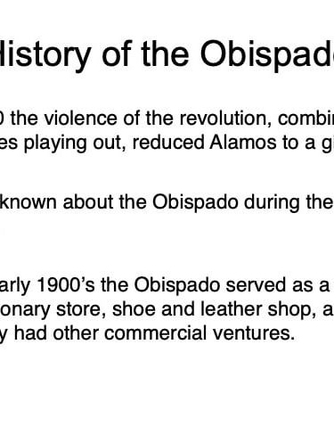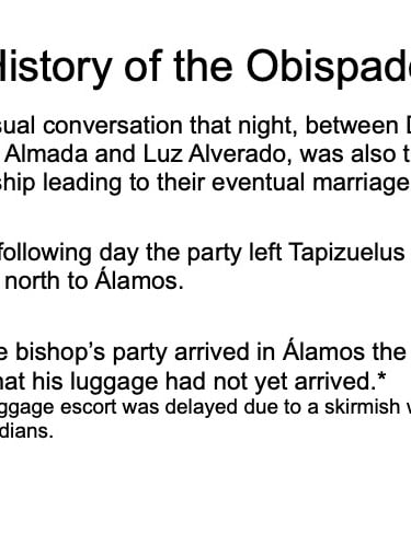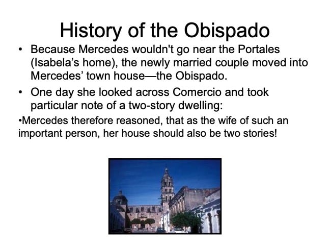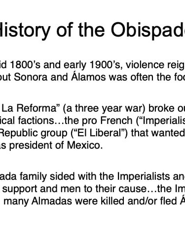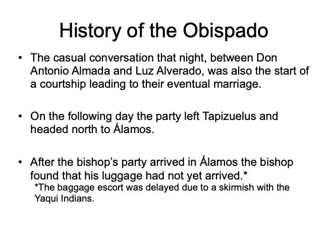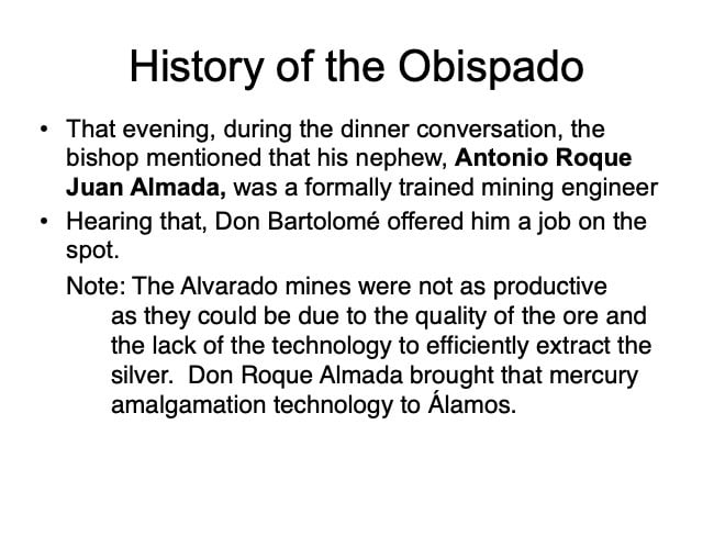 There are elements in the Bishop’s House both sacred and profane: “sacred” in that the first Bishop of the region, a large area encompassing what is now the Mexican states of Sonora, Sinaloa, and Baja California and the U.S. states of Arizona, New Mexico, Nevada, and parts of Oregon and Idaho, lived in this house from 1784 until his death in 1789, but “profane” in that it was also the 19th Century home of mine owner José María Almada’s mistress Mercedes, who demanded that a second floor be added to the structure in keeping with the homes of the “proper people” of Álamos.