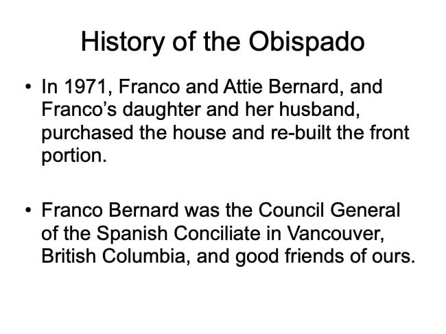 Dr. Craig Fischer and his wife Sandra bought the Bishop’s House on Comercio Street in 2006, a house with a history dating back to the 18th Century which once was the home of Bishop Antonio de los Reyes, the first Bishop of the Californias. Dr. Fischer’s presentation was made on the patio of their home.