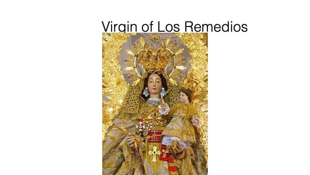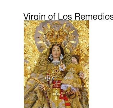 By the early seventeenth century, there were at least ninety festivals a year organized in Mexico City; that’s more than one festival a week. Guilds, religious orders, parishes, convents and lay groups called confraternities celebrated their specific patron saint. The university organized festivities surrounding graduation and the Immaculate Conception of the Virgin Mary. Civic authorities sponsored specific festivals – the entrance of a new viceroy or archbishop, the oath of allegiance to a new monarch, and funeral ceremonies for a deceased king, viceroy, or archbishop. In addition there were the citywide fiestas such as Easter, Carnival, All Saint’s Day, San Hipólito, Corpus Christi, and the festivities dedicated to the Virgin of Los Remedios. San Hipólito day marked the conquest of the Aztec capital by Cortés and the Virgin of Los Remedios was the title of the Virgin Mary associated with the conquistadores and their victories in Mexico [image of virgin from Spain].