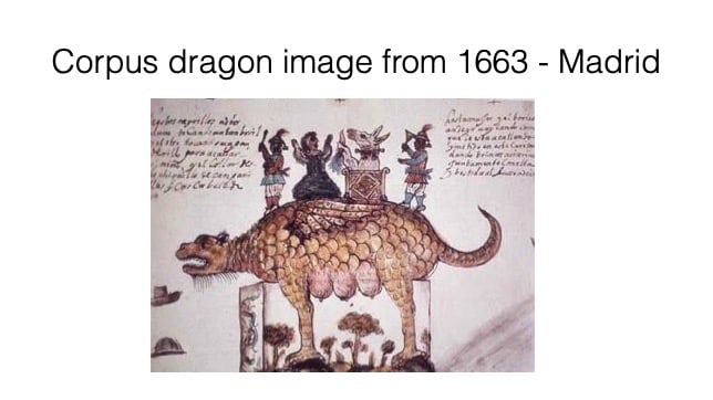 Taken from “Giants and Gypsies: Corpus Christi in Colonial Mexico City,” by Linda A Curcio-Nagy, in Rituals of Rule, Rituals of Resistance: Public Celebrations and Popular Culture in Mexico (Wilmington, DE: Scholarly Resources Inc., 1994), 1-26. I use wording by Curcio-Nagy without attribution in piece and recommend reading this very interesting article. - Pam Price
