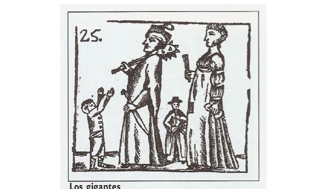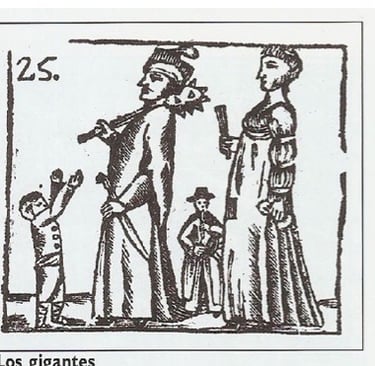 The giants, gigantes[image], were made of wood, paper, metal, fur, wigs, and cloth in the shape of huge individuals, measuring at least five meters in height – more than fifteen feet. They were apparently complicated in design and in many cases made of fine cloth and adorned with silver or gold trim. The giants were brought to life by people inside of them. In Mexico City Africans “walked” the giants and occasionally the civic officials, calbildo, commissioned specially decorated carts or floats to carry them in the procession.