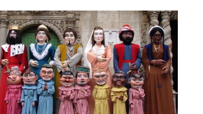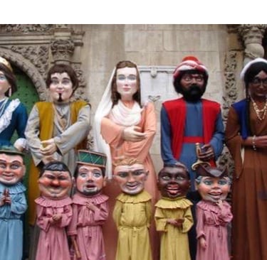 Along with the dragon, giants, devils and big heads at the beginning of the procession came costumed dancers. Three main ethnic groups of the city – Native Americans mulattos, and Spaniards – danced in these processions. Other groups occasionally joined including gypsies, Turks, and Portuguese. Particularly during the sixteenth century the dancers performed on elaborately decorated floats that were stored for reuse the following year. The dances were not limited to the processional route – performances also took place inside the cathedral.