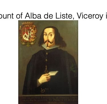 The importance of Corpus to viceroys is seen not only in their continued financial and moral support, but also by their efforts to change certain Corpus traditions even if it created a scandal. Questions of honor and protocol caused concern at the viceregal court, and in the city generally. At issue regarding Corrpus was the question of how close to the Eucharist one was placed in the procession. Proximity to the monstrance, the recognized place of prestige, was a continuous point of contention among the guilds and confraternities, and royal officials also took part in the rivalry. In the mid seventeenth century, the viceroy – Count of Alba de Liste [image] – created a major public disturbance by stopping the procession mid-march in order to implement his will. In 1651 he demanded that his pages replace church officials in the processional line. Traditionally, the ecclesiastical leaders followed directly behind the monstrance, thereby serving as the entourage for the Host. Perhaps the viceroy wanted to further cement, in the minds of the public, the relationship between the Eucharist and the ruling authorities. The Eucharist represented higher moral authority and placing royal servants closer to the monstrance was strengthening the civilians at the expense of the clergy. Scandal was the result – the viceroy abandoned the procession in midstride and ordered the guilds and confraternities to stop where they were. He placed the monstrance, which had not yet left the cathedral, under guard. When the clergy attempted to resume the procession in violation of viceregal orders, a small brawl broke out in which the monstrance was almost knocked over and the clergy abandoned the procession. The crowd then turned unruly. Informed of the commotion at the cathedral, the viceroy ordered the procession to continue without any of the city’s clergy. The ecclesiastical members directly involved did not take this attempt to alter the procession lying down. They immediately fired off a series of protests to Spain.