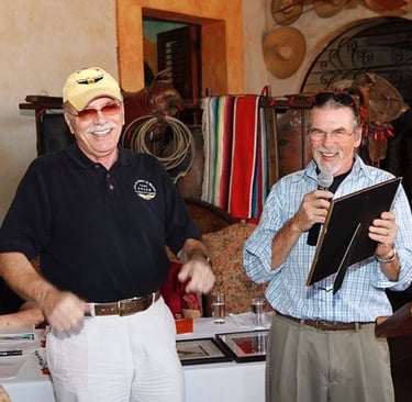Steve McKelvy (right) hands a lifetime membership award to Jim Swickard, owner of the Hacienda de los Santos Resort in Álamos.
