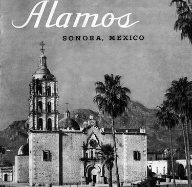 The 32-page publication serves as a tourist promotion for Álamos by describing the climate, the architecture, and the benefits of exploring the state of Sonora. It also discusses the region's history, with sections on pre-colonial life, the conquest of Mexico in 1519 by Herrnán Cortez which led to the discovery of gold and silver in Sonora, the great wealth of Álamos in thr 18th and 19th centuries, and it rapid decline in the first half of the 20th Century.