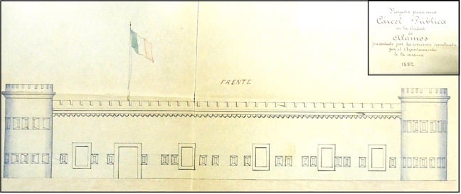 A detailed plan was presented by the City of Álamos to the State of Sonora in 1882 for the construction of a public jail on the hill of Guadalupe. The plan was approved and the project was started, but with the departure of the governor, a native of Alamos, Carlos R. Ortiz Retes, work was suspended just after the foundation was laid. An 1888 map of the city shows "foundations of the barracks" identical to the proposed plan, so no work was completed between 1882 and 1888.
