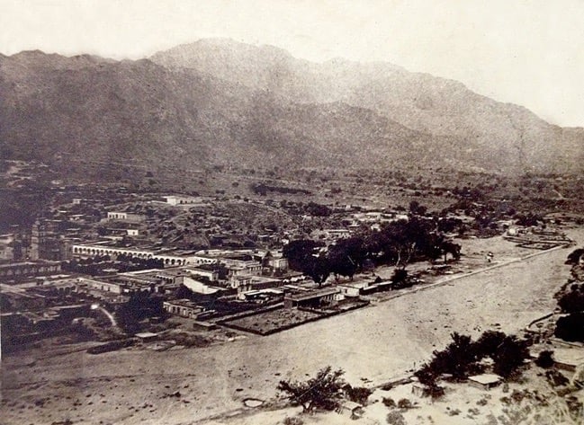Someone could deduce that this photo was taken just a few years after the flood because of the wide riverbed, but that is not true either. On top of Guadalupe Hill appears the Álamos jail, which was built between 1882 and 1889, which means the photo was taken after 1889 but before September 15, 1892, when the Álamos market was inaugurated. The market is clearly absent from this picture.