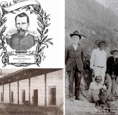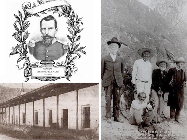 The following article was written by Álamos Historian Juan Carlos Holguín Balderrama on September 24, 2015—the 150th anniversary of the battle in Álamos which killed General Antonio Rosales. In the collage above there is the portrait of General Rosales, the Casa de Moneda as it appeared in the 19th Century, and a picture taken in the early 1900s of five remaining survivors of the battle.