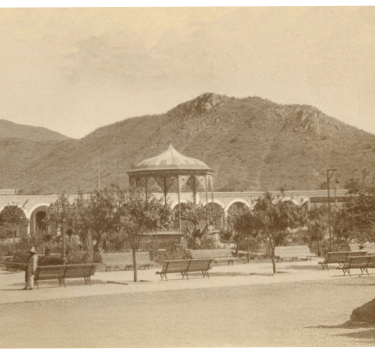 The kiosk proudly remains in the center of the Plaza de Armas, although it has had numerous restorations since 1904—the last one being in 2008. The picture above was taken September 15, 1904, when government officials gathered for the official inauguration. An inscription appears on the kiosk today, which gives the name of the mayor and council at that time: Ignacio L. Alamada, mayor; Dionision E. Acosta, Miguel C. Urrea, Pedro S. Salazar, Manuel Goycoolea, José Moreno Salazar, and Panfilio Santini, council. Relatives of these families continue to live in Álamos, and more information on the history of the Santini family can found on this website in the “Interview Section.”