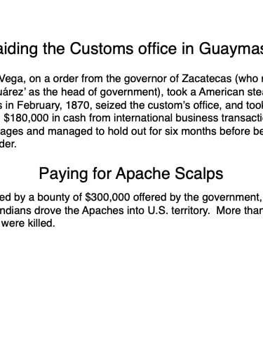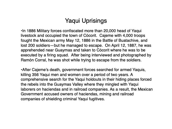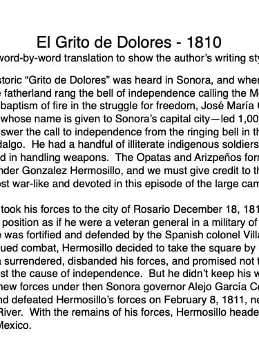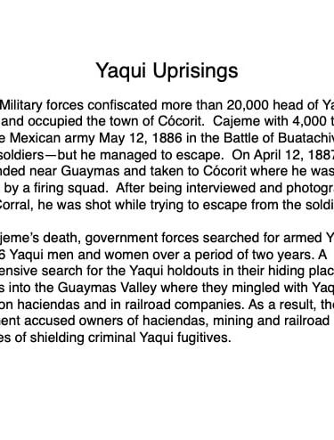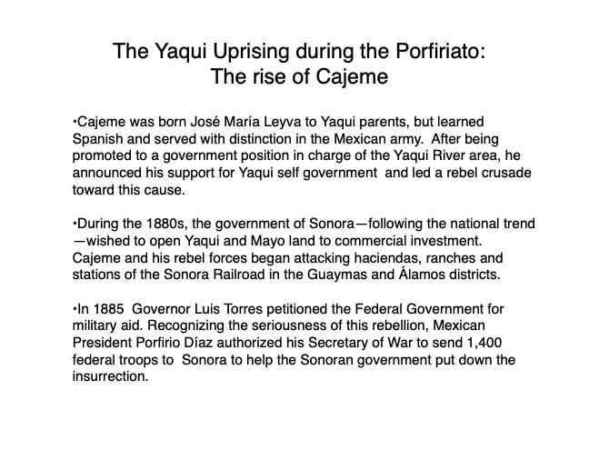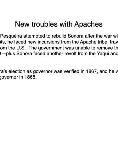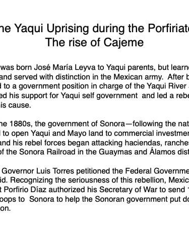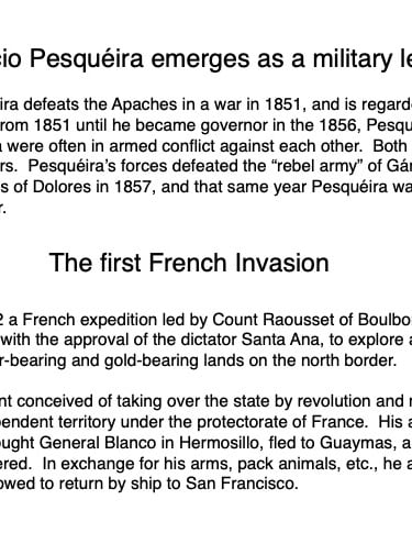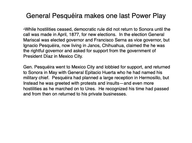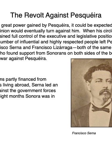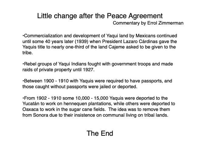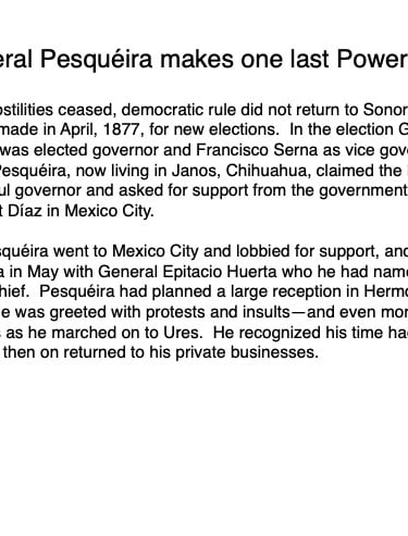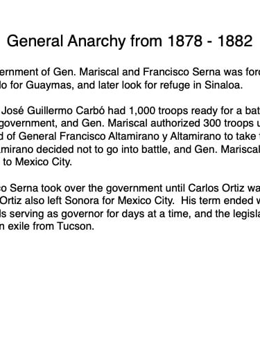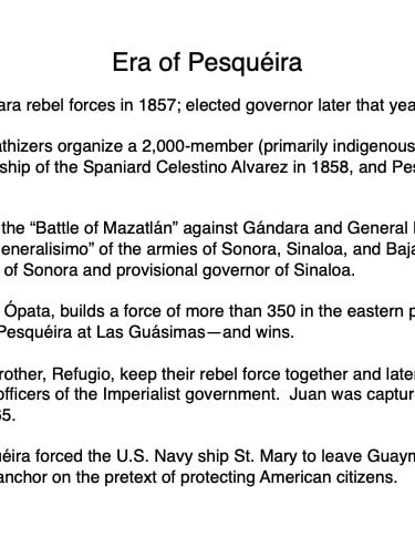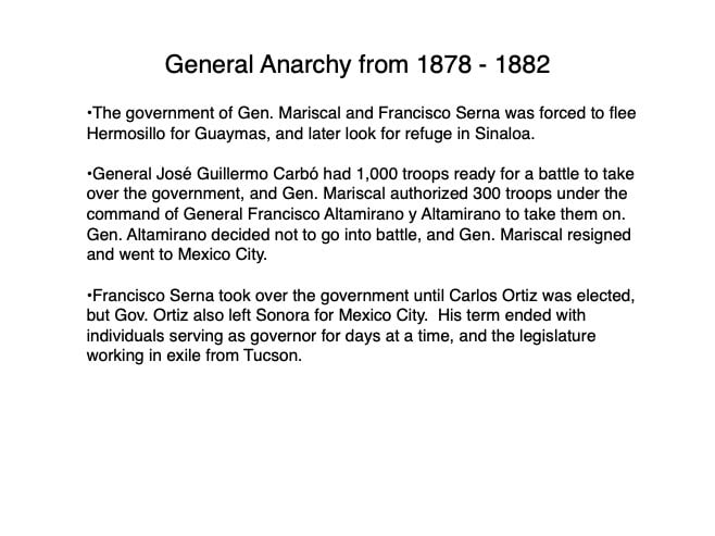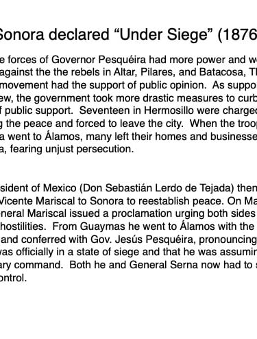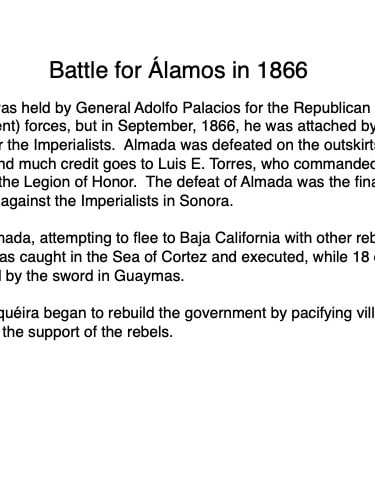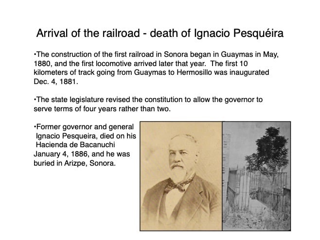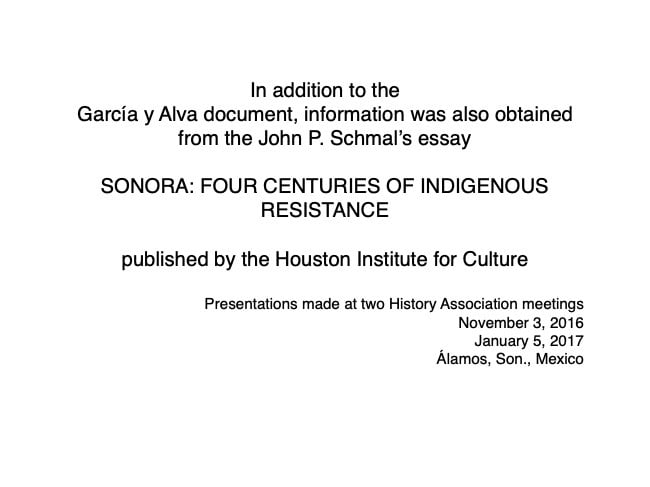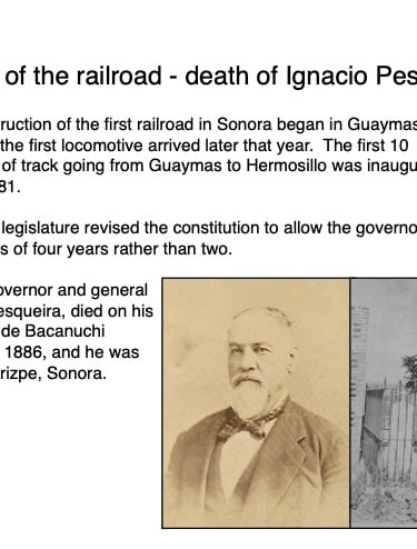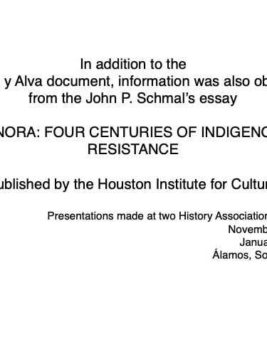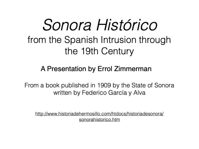Federico García y Alva published “Sonora Histórico” for the government of Ramón Corral (1895-1899), and the 65-page document outlined Sonora’s ancient past through the 1897 peace treaty with the Yaqui tribe. The document has been translated by Errol Zimmerman, who gave this presentation to the History Association on Nov. 3 (Part 1) and Jan. 5 (Part 2).