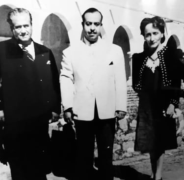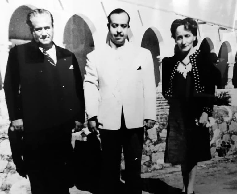 Bottom: Alfonso Ortiz Tirado is photographed at the plaza de Armas in what was probably his last visit to Álamos in 1944. In the center is musician José Sosa Chávez, and to the right is Sarah, Alfonso's sister, who was a celebrated singer in her own right.