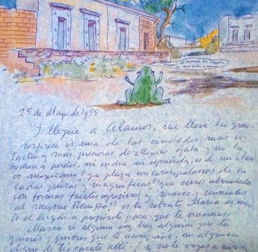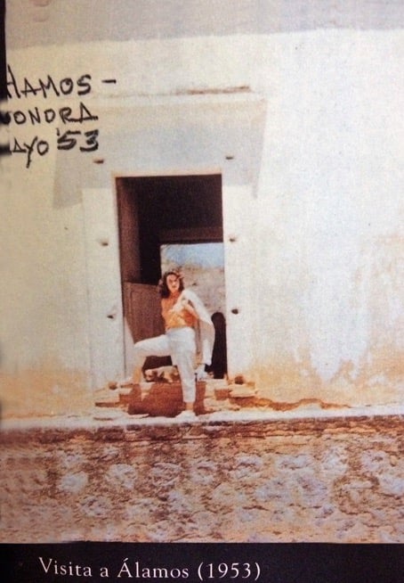 In 1955 artist Diego Rivera visited Álamos, sent this letter to María Félix, and sketched her house at it looked at that time. Two years earlier María posed at the front of that house.