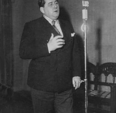 Top: Ortiz Tirado sings on Radio Station XEW, where he was featured in the 1930s and 1940s as the "Voice of Latin America."
