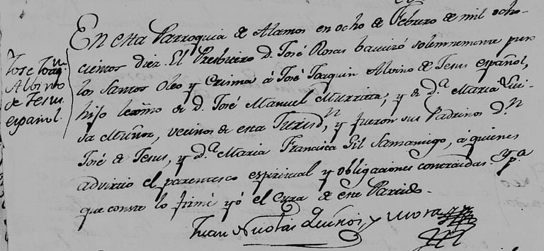 Historian Francisco R. Almada tells us that Joaquín Murrieta was born in the ranch of El Salado, south of the municipality of Alamos in the year 1809, and baptized In the Alamos parish church February 8, 1810. The baptismal record notes that he is of "Spanish quality" the parents are “neighbors of this jurisdiction”, indicating they were not inhabitants of the Real de los Alamos but from its region—where El Salado was located.